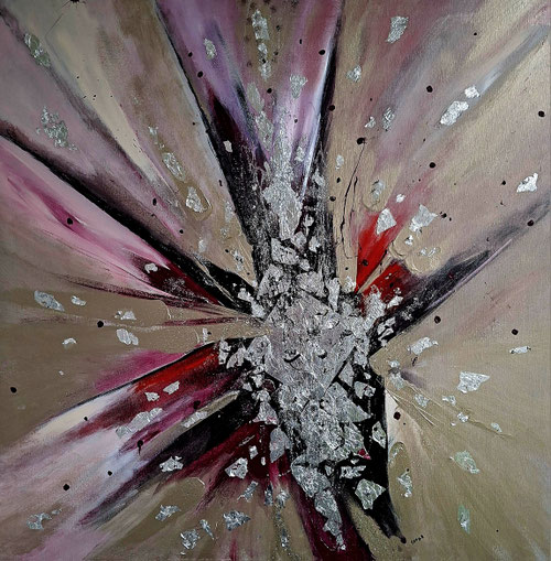 Acrylic an Beaten Silver on Canvas. 100 x 100 cm